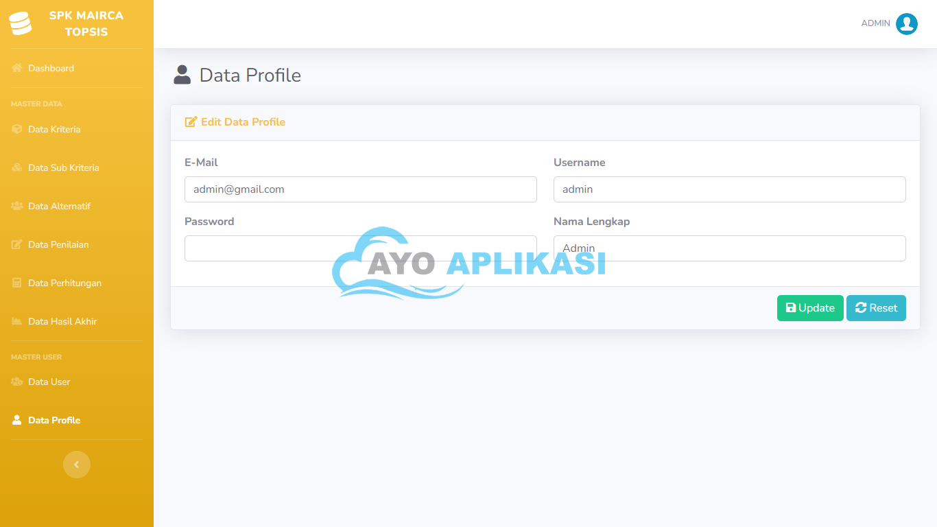 Alternatif, kriteria, sub kriteria dan penilaian yang ada pada aplikasi ini hanya sebagai contoh kasus saja dan dapat diganti/dirubah langsung lewat program aplikasi sesuai dengan kebutuhan secara dinamis. Selain itu, kami juga dapat